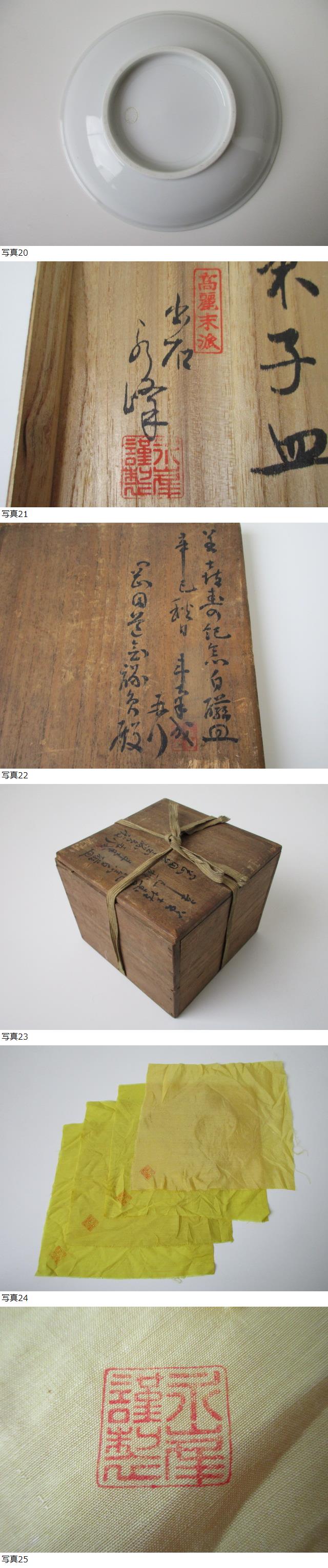 高麗末派 在銘 出石永峰 梅菊彫 白磁 菓子皿 五客揃 共箱 検/ 茶道具 煎茶道具 唐物 中国古玩 古美術 收藏