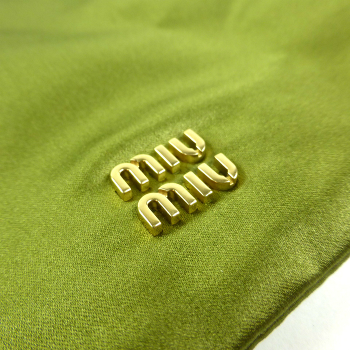 ミュウミュウ (MIUMIU) サテンシルク 巾着 ポーチ ミニバッグ 5NG010 グリーン(中古) 收藏