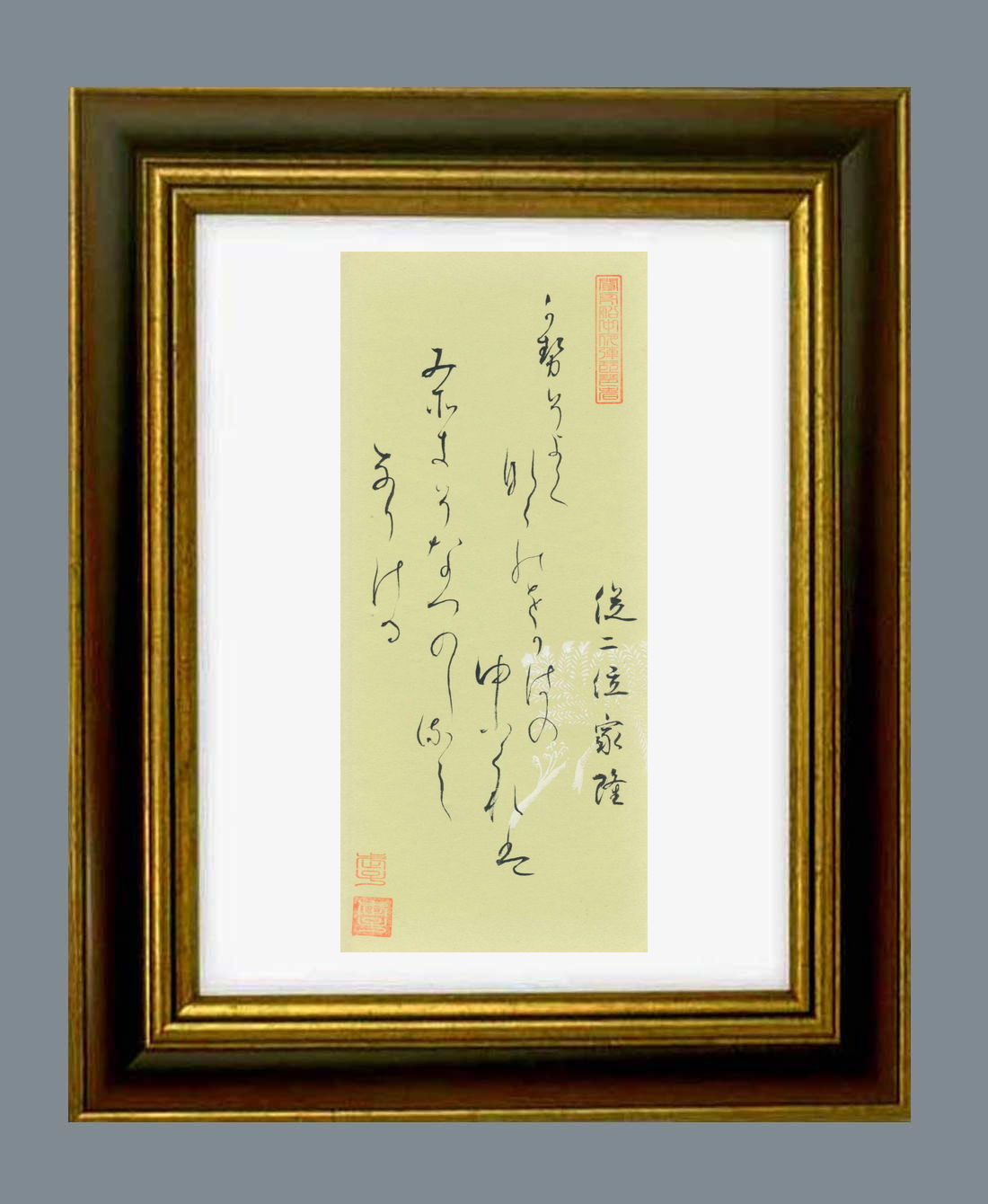 「百人一首」原本の大きさ タテ27.0センチ ヨコ11.8センチ。額縁の大きさは、タテ40.0センチ ヨコ30.0センチ。額縁は新品です。 |
