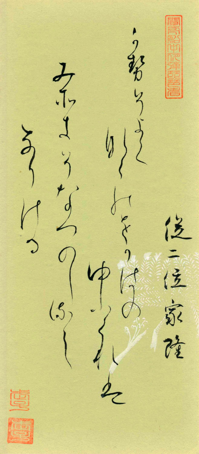 従二位家隆の和歌・仙台藩13代藩主・伊達慶邦の夫人で伊達孝子(たかこ)自筆「百人一首」和歌番号-98 收藏