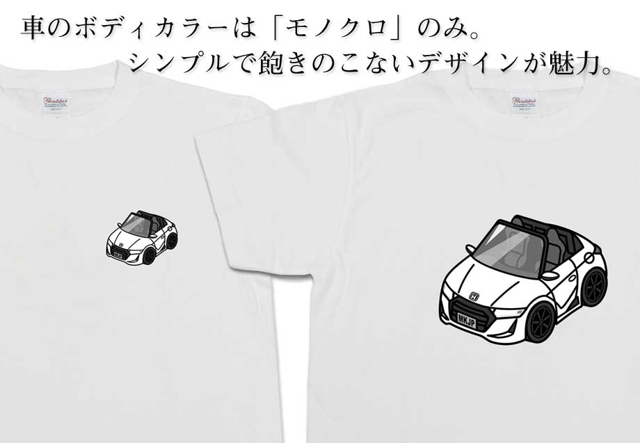 車のボディカラーは「モノクロ」のみ。シンプルで飽きのこないデザインが魅力。クールなモノトーンのコーデでお洒落な大人の雰囲気を醸し出します。Tシャツデザインのベースは2種類。【ノーマル/ワンポイント】をラインナップ。Tシャツ以外にも、キーホルダーやスマホケース、クッションなども同シリーズでラインナップしています。【すべて受注生産です】 |