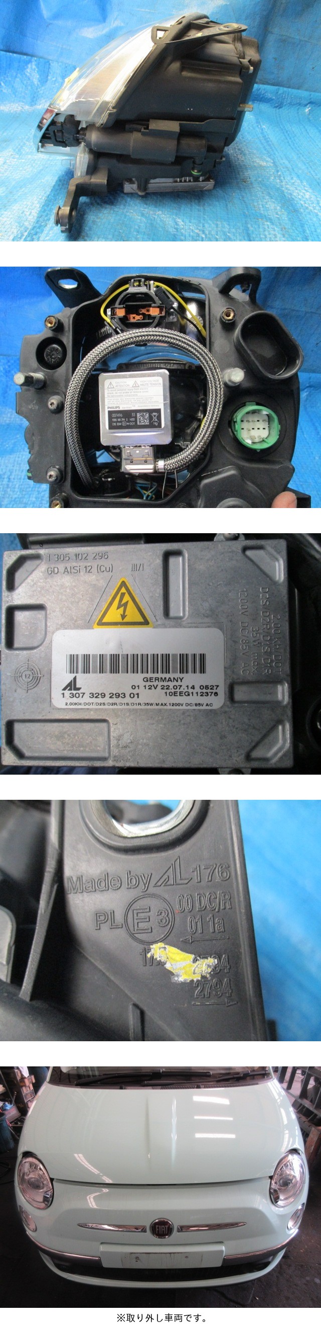 ※点灯OK※割れなし●フィアット500 312系●右ヘッドライト レンズ 運転席側●純正 HID仕様●AL 176●ウォッシャー付き●31209 31212 31214 收藏
