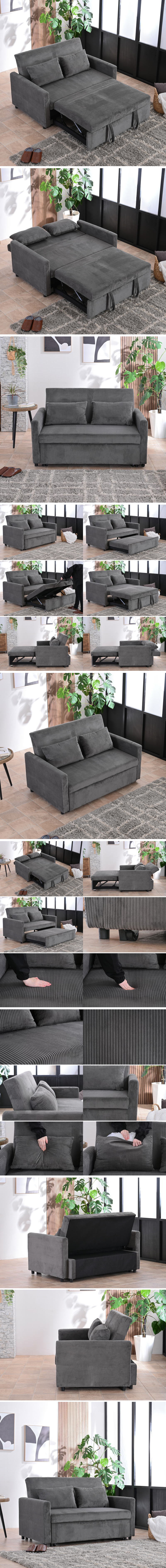 新品 3way 2人掛けソファ カウチソファ ソファベッド コーデュロイ リクライニング 角度調節 グレー コンパクト outlet:ST54-4K 收藏