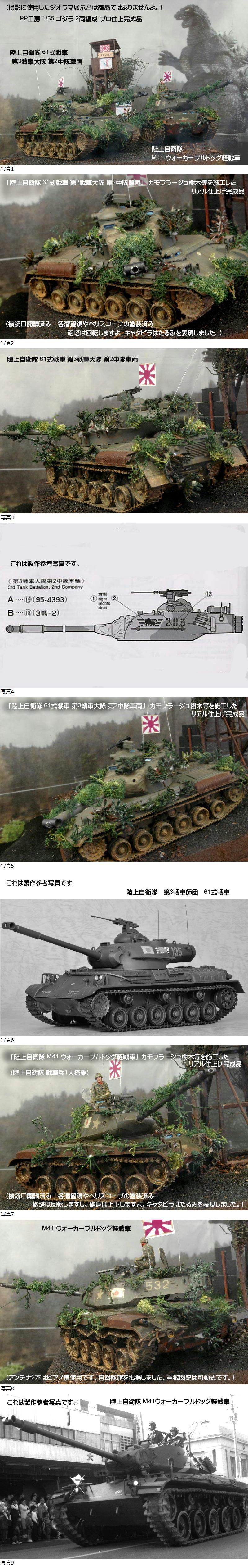 PP工房 1/35 ゴジラ 2両編成 プロ仕上完成品【陸上自衛隊[61式戦車 第3戦車大隊][M41 ウォーカーブルドッグ軽戦車]】自衛隊員1人搭乗 收藏
