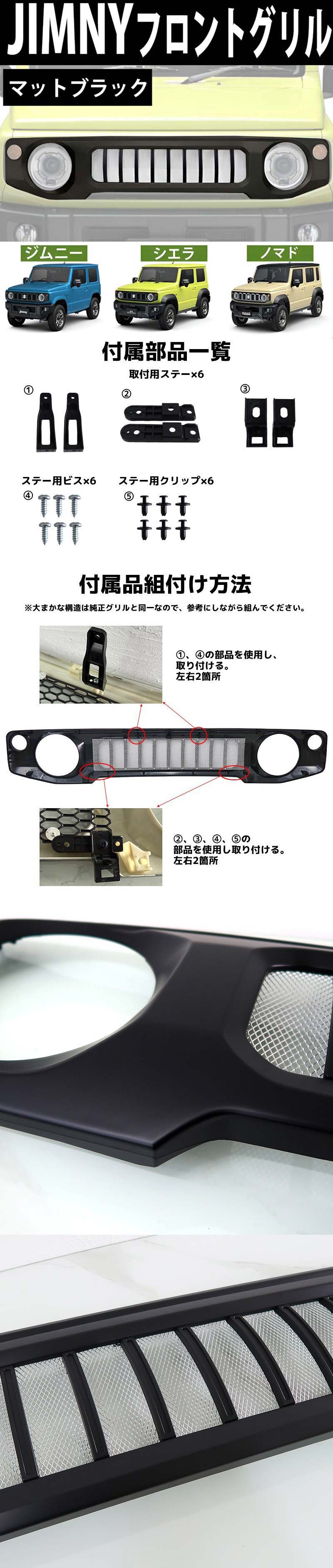 スズキ ジムニー ジムニーシエラ ノマド フロントグリル JB64W JB74W JC74W ABS製 アクセサリー カスタム パーツ カスタムグリル HI-42BK 收藏