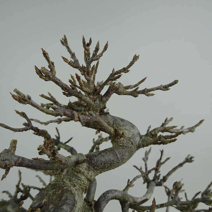 | ■植物ですので撮影時期や季節によって剪定などの手入れにより写真から変化がございます。撮影日をご確認のうえ、ご注文ください。 ■春頃~7月上旬。葉すかし、葉刈りをおこないます。目的として全体的な枝や葉の量を減らし風通しを良くし、幹にしっかりと日光を当てるため。 【楓盆栽】 春先に芽吹き、夏頃には新緑、秋頃には紅葉、冬は寒樹姿と四季を通して楽しめる植物です。 |