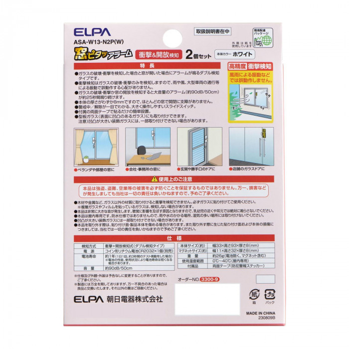 窓ピタッアラーム 衝撃&開放検知2P ASA-W13-N2P(W) 收藏