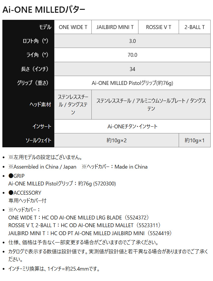 オデッセイ Ai-ONE MILLED ONE WIDE T パター 34インチ STROKE LAB 90シャフト スチール 1W T CH ミルド 2025 日本正規品 即納 收藏