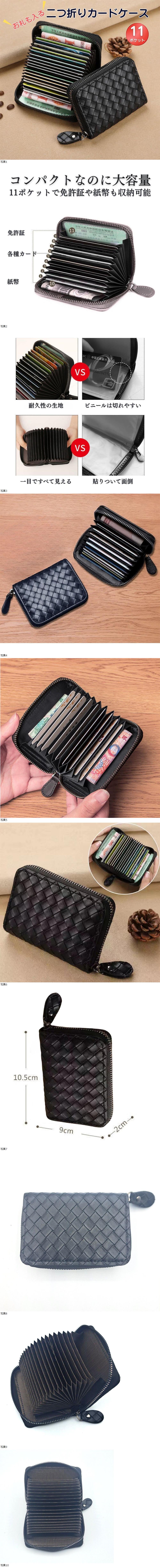 大容量 カードケース 編み込み 黒 じゃばら 名刺入れ コンパクト財布 カードホルダー レザー ブラック ラウンドファスナー 革 收藏