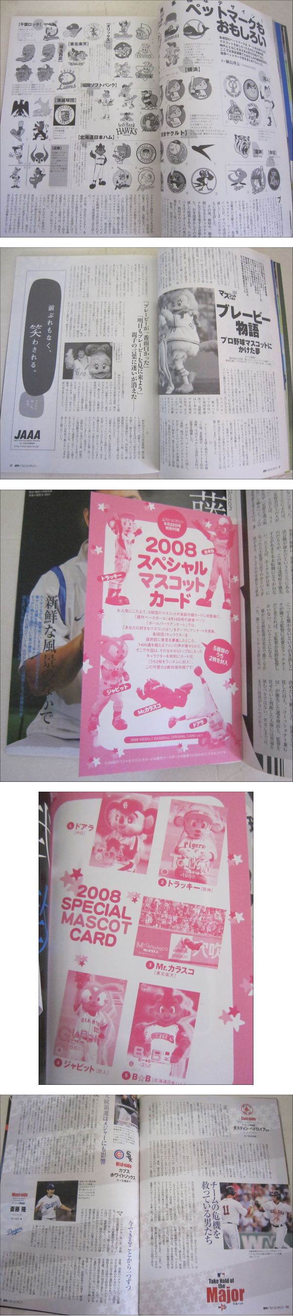 週刊ベースボール 2008年09月22日号 マスコット大集合 カード2枚付き(未開封) つば九郎, ドアラ, ブレービー物語 收藏