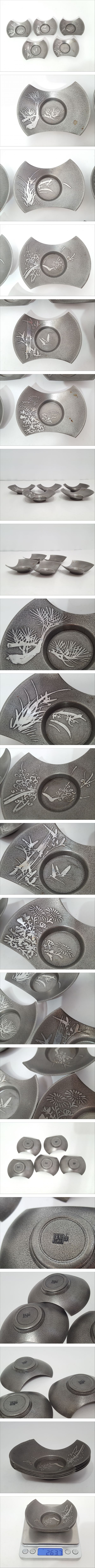 【うぶだし】錫半 上錫 絵変わり 茶托 5客揃/約6.5×9×2cm/分銅型/ピューター/金属工芸/錫製/茶器/茶道具/茶たく/和食器/04KM040201 收藏
