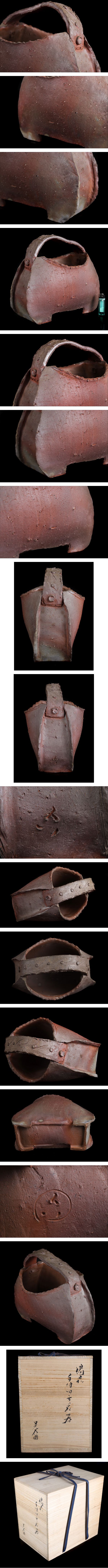 人気実力作家 県重要無形文化財 金重晃介 備前 窯変 手付四方花器 花入 共箱 本物保証F483 收藏
