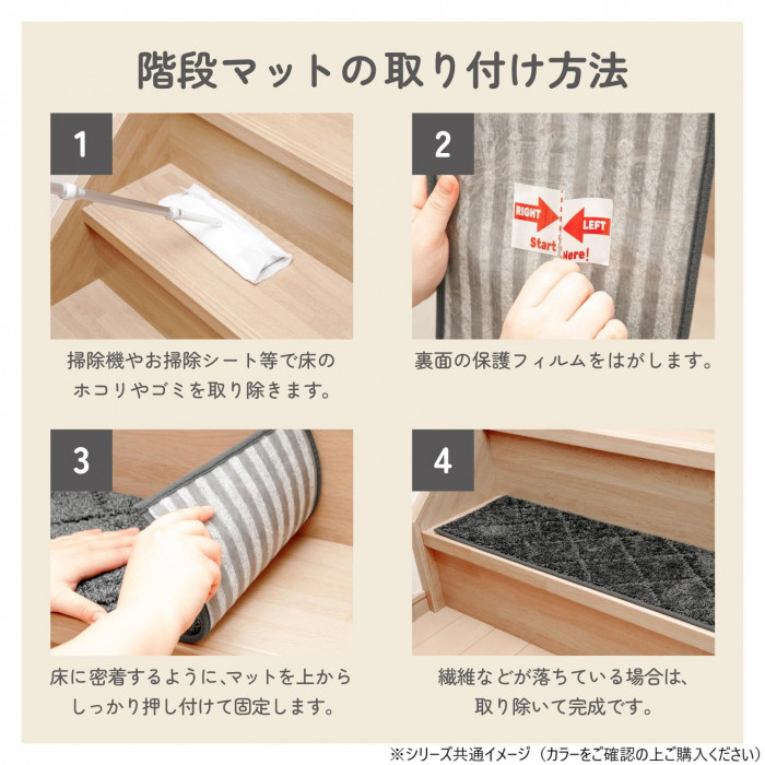 | ふわふわのクッション性で生活音や床へのキズを軽減。ペットにもやさしい階段マットです。丸洗いできていつでも清潔にお使いいただけます。 ※洗濯の際は洗濯ネットをお使いください。 ※洗濯表示に従い、お洗濯をお願いします。 |