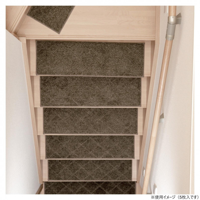 カキウチ ふわピタ階段マット ワイド 5枚入 ブラウン 22×70cm 收藏