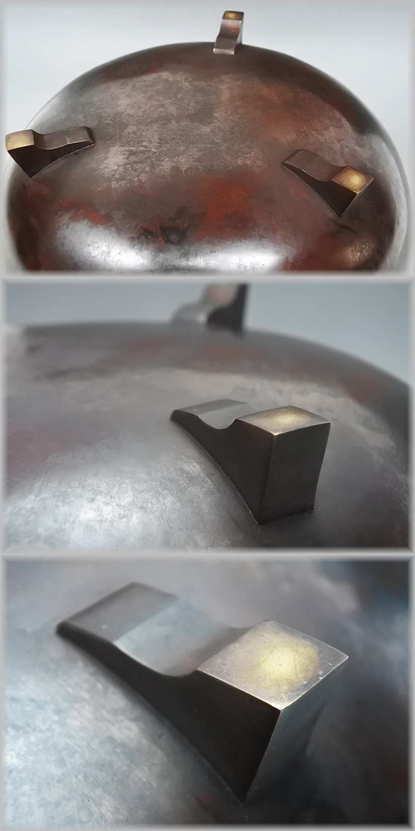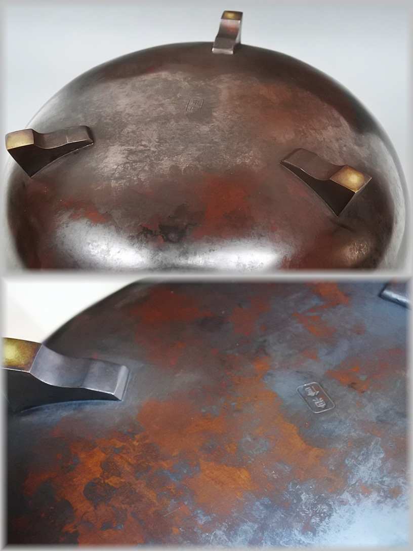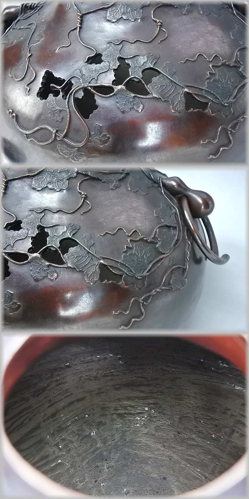 希少 未使用 美品 高岡銅器 金工師 宗信 作 銅製 唐草瓢取耳付取手 香炉 香炉 コレクション 保管品 三ツ足付香炉 銅製 和モダン 茶道具 收藏