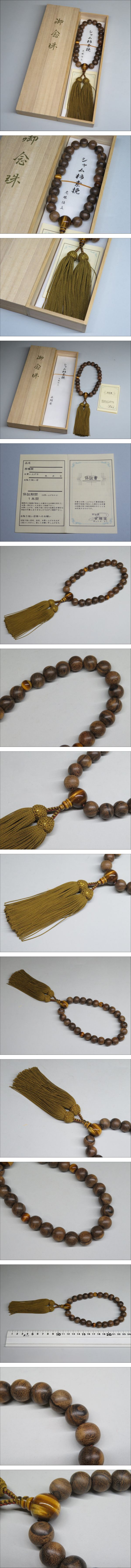| 「未使用品」高級御念珠 正絹房 シャム柿素挽 虎眼仕立 沈香虎目石製御念珠 /御念珠 数珠 京都念珠屋 | ||