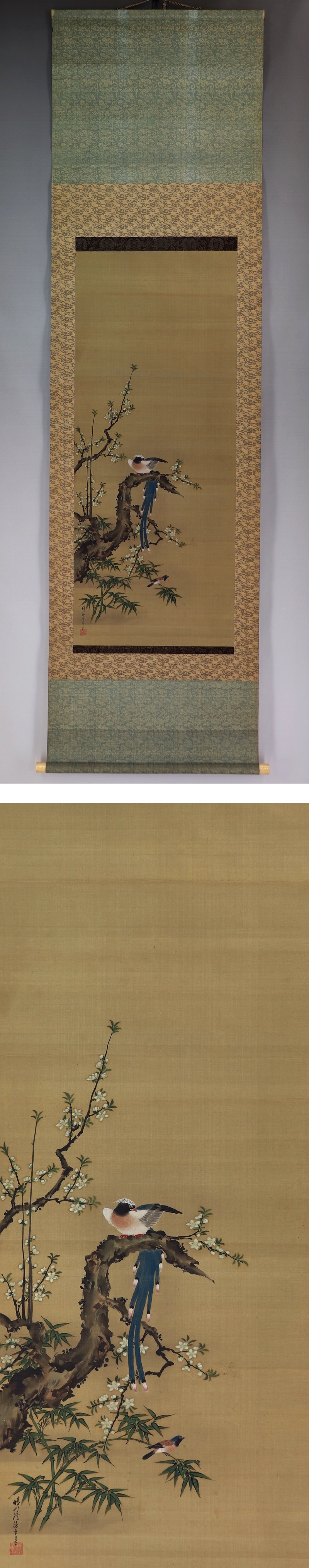 | №2102047 名品【真作】狩野晴川院【花鳥図】◆絹本◆合箱◆掛軸 | |