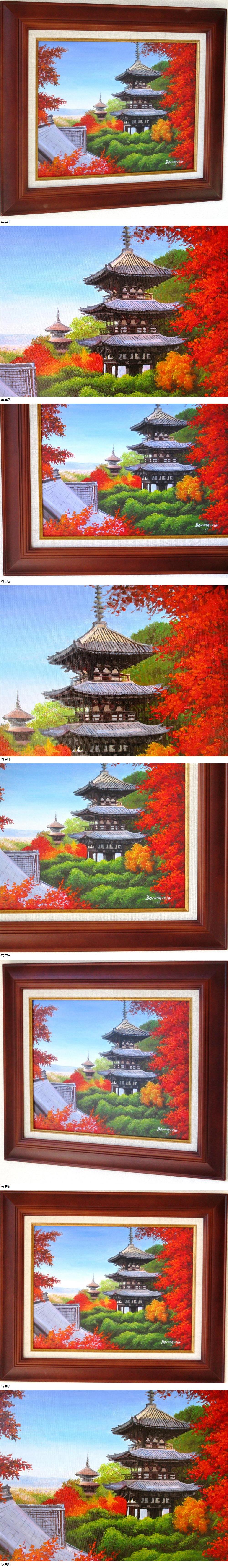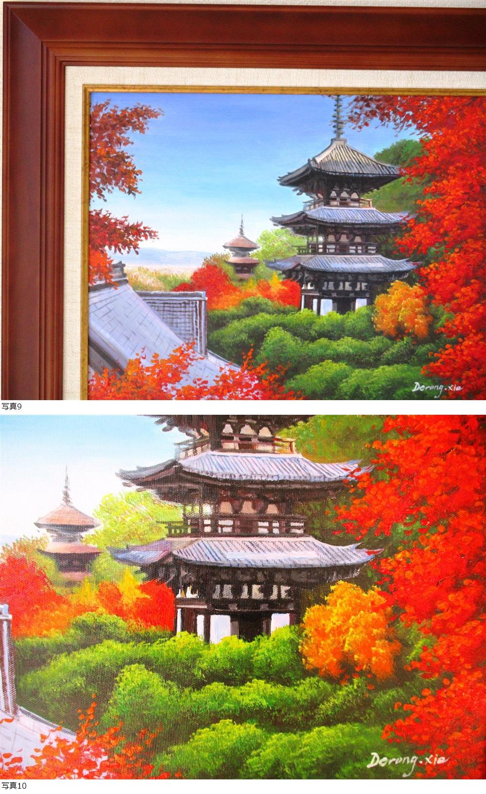 真作 謝徳栄 絵画 油絵 風景画 奈良 紅葉 當麻寺三重塔 F6 WG210B 收藏
