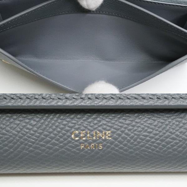 CELINE セリーヌ ラージフラップウォレット カーフスキン 長財布 グレー 收藏