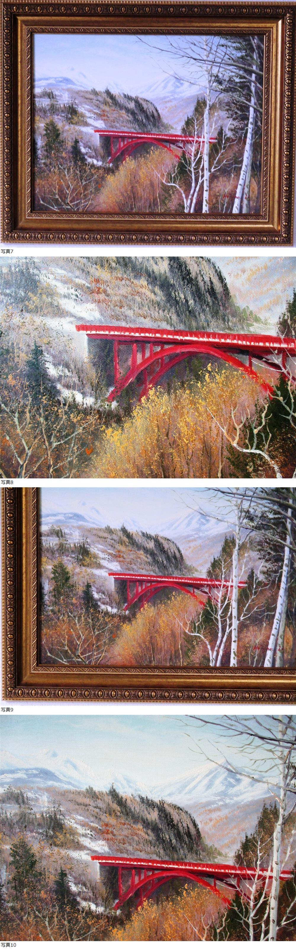 真作 李海燕 八ヶ岳絵画 油絵 風景画 八ヶ岳高原ライン東沢渓谷赤橋からの八ヶ岳 F6 WG285