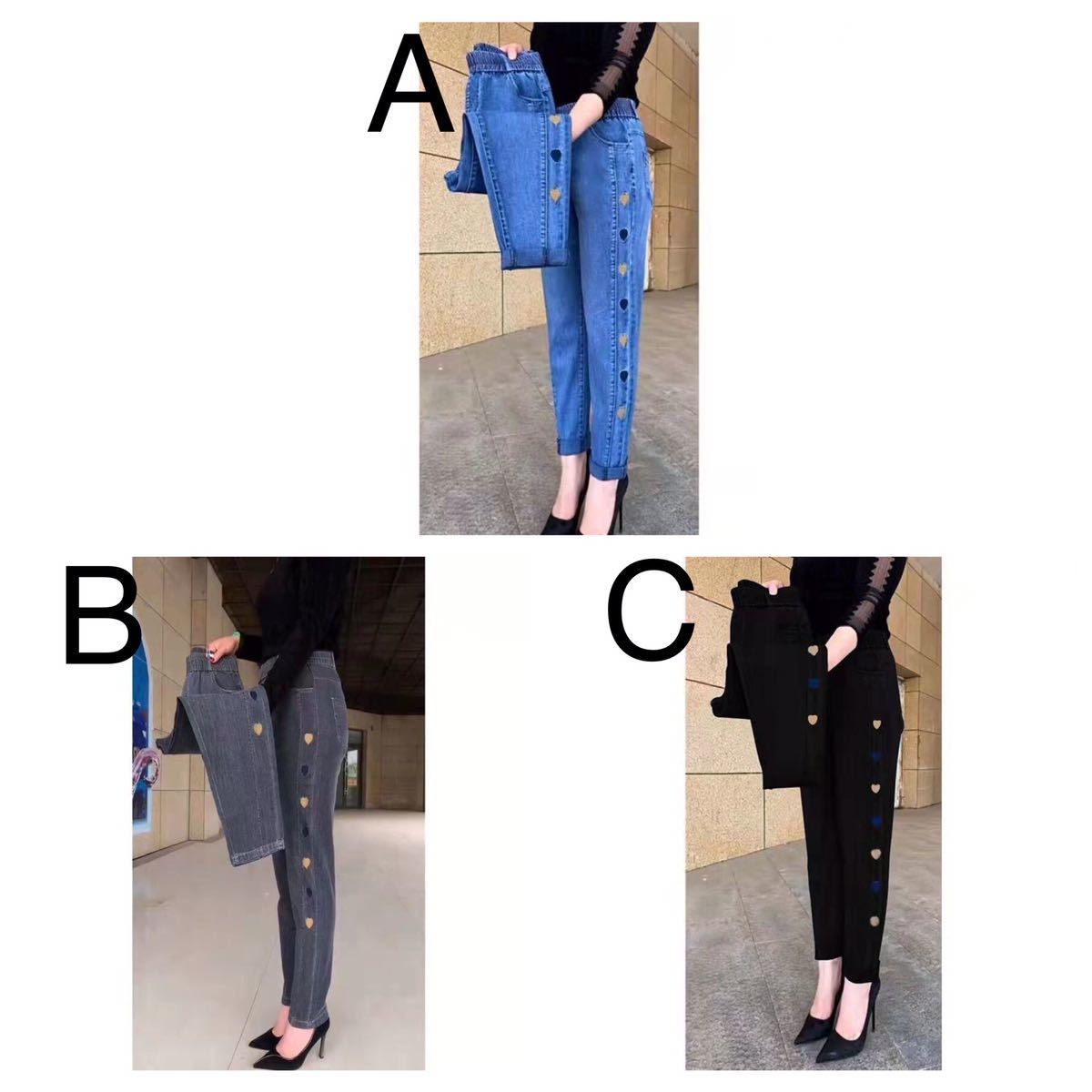 デニムパンツ レディース 春夏 ストレッチ ジーパン ジーンズ 九分丈 カジュアル 可愛い ハート柄 通勤 カジュアル ジーンズ ボトムス SLTB011(3色M-4XL)