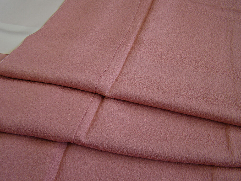 | 商品説明 | こちらのお品は「袷」ですので10月から5月までお召頂ければと思います。 しなやかで柔らかな極上の着心地を誘うぽってりとした重めの鱗洸ちりめん地の変り織の生地、 堅牢草木染の渋い桃花色地の色無地着尺、 八掛は共色に地模様入り(正絹)、紋は入っておりません。 |