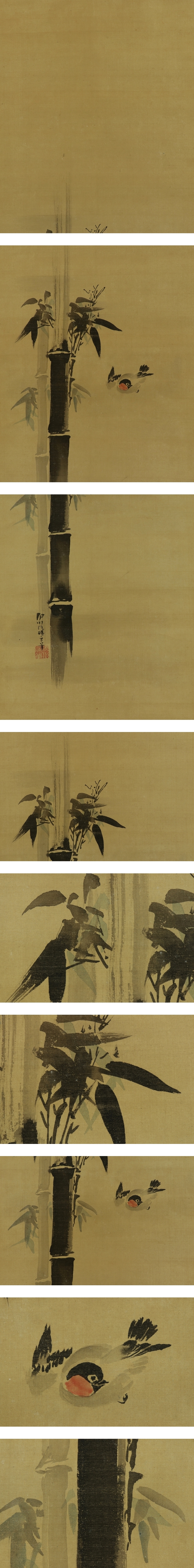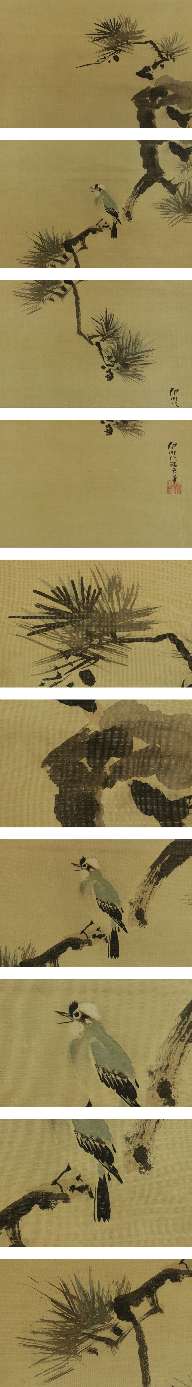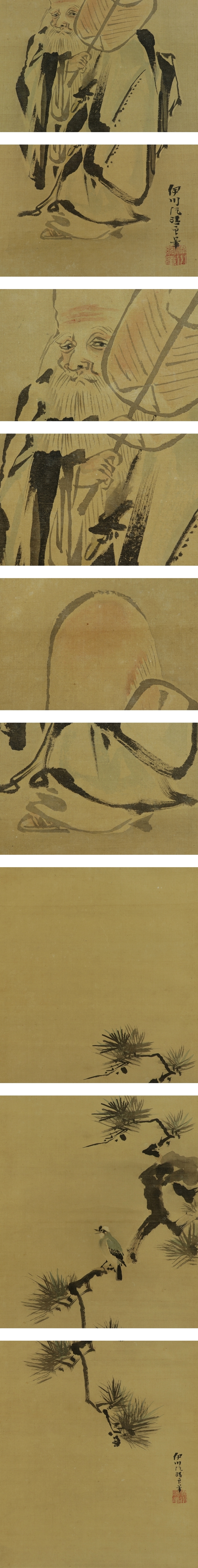 | №2301041【真作】狩野伊川院【三対幅・慶祝図】◆絹本◆合箱◆掛軸 | |