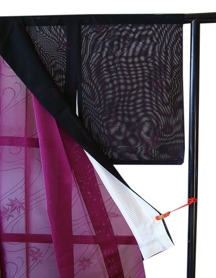 | ちょっと一言 | 「紗」の最大の魅力はやはり涼感たっぷりとした演出に絶妙の透かし加減です。 とても涼やかで、さらっと着心地良く大変に滑らかな風合を醸し、シンプルな色彩の世界に 帯や小物等の組み合わせにより無数のコーディネートをご堪能頂けお愉しみ頂けます。 洒落味に満ちた存在感を身に付けて頂け、粋な装いに大人のお洒落に出会える事と思います。 |