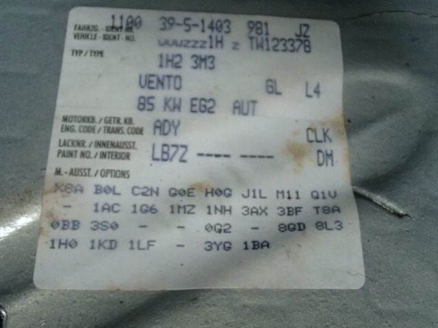 車体番号:WVWZZZ1HZ-TW123378