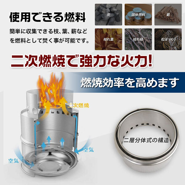 屋外用薪ストーブ 分割式 小型 ステンレス製 焚き火 屋外調理 コンパクト 持ち運び収納袋付き キャンプ アウトドア 收藏