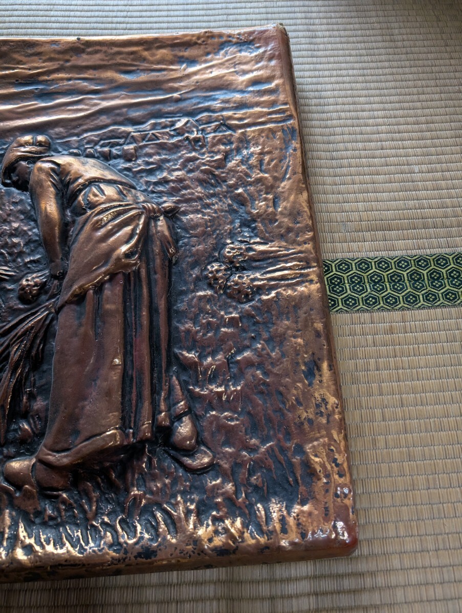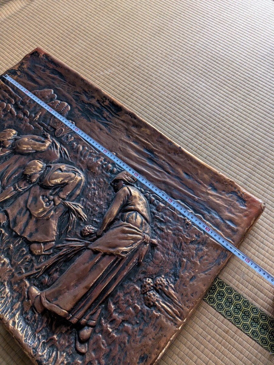 家に昔から置いてあったものになります。金属のような色はしてますが実際は軽いです。樹脂かなにかでできてる感じです。1箇所角に凹みがあります。横約80センチ、縦53センチくらいで結構大きいです。状態は画像で判断お願いします。