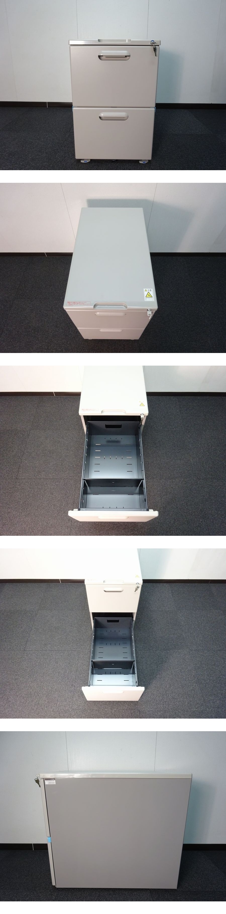 ・メーカー:イトーキ ・型番:CRY-047MDCSB-WE ・サイズ:W400×D680×H621 単位(mm) ・本体カラー:グレーW ・引出し前板、天板:ライトグレー ・価格:¥80,850 ■仕様 ・本体:スチール塗装仕上 ・引出し前板:樹脂 ・仕切り板各段1枚付、ペントレイ付 ・鍵2本付 ■状態 ・こちらの商品は未使用品となります。目立つキズなど無く綺麗な状態です。奥行が深いタイプとなります。この機会にオフィス、ご自宅にいかがでしょうか | ||||
