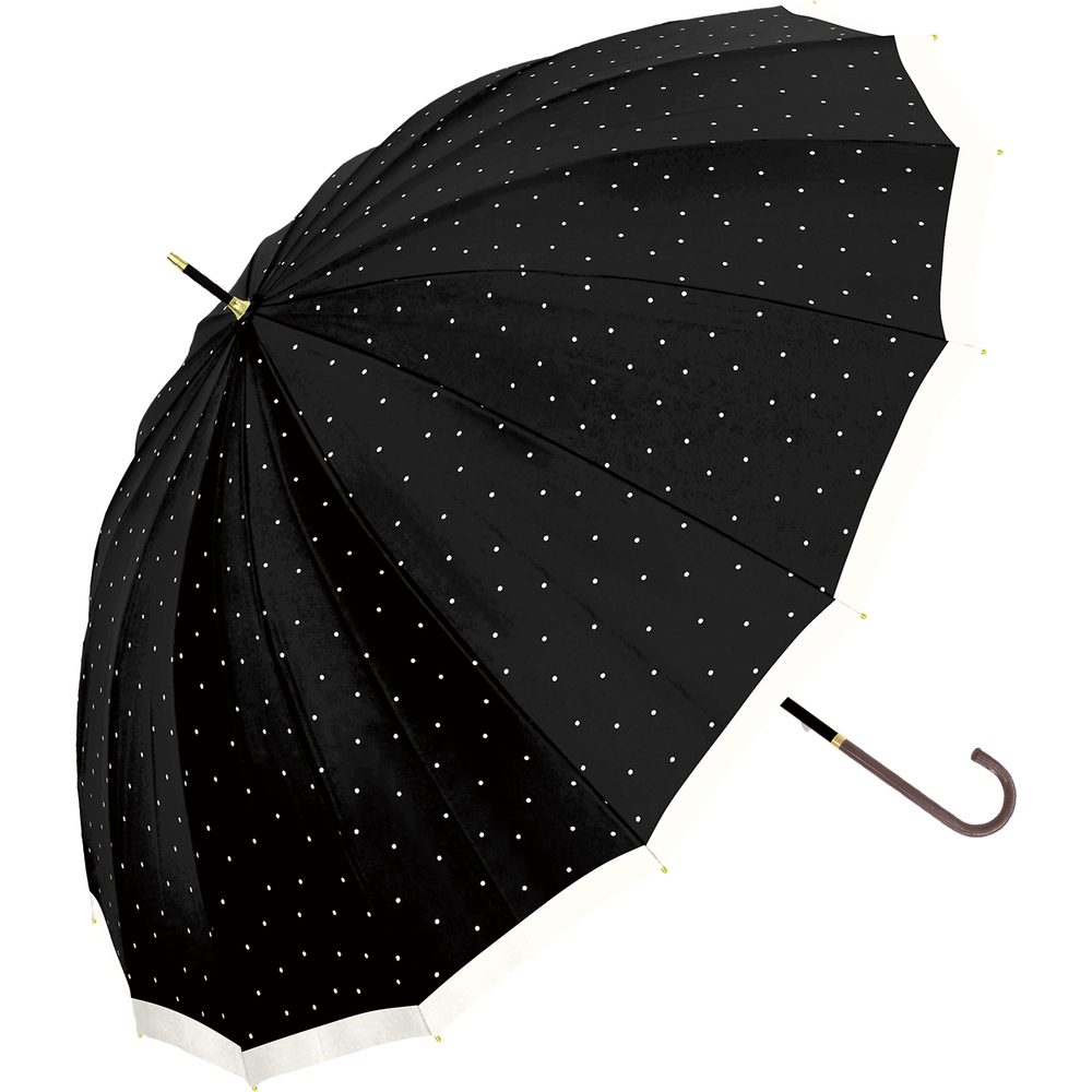 ☆ ドットバイカラー/ブラック ☆ Natural basic 55cm 16本骨 傘 傘 16本骨 レディース おしゃれ 耐風傘 55cm 手開き 長傘 耐風 收藏