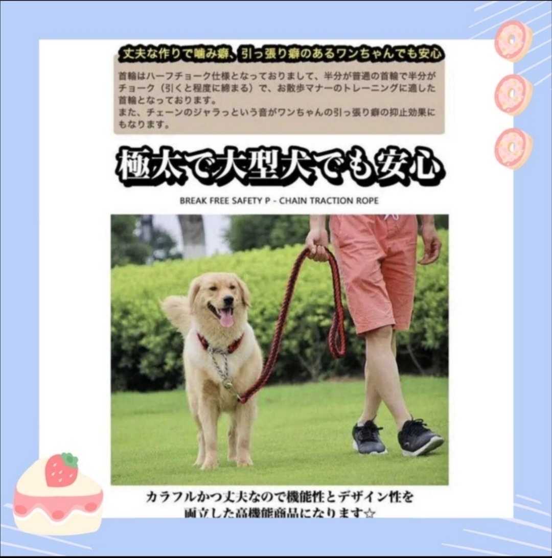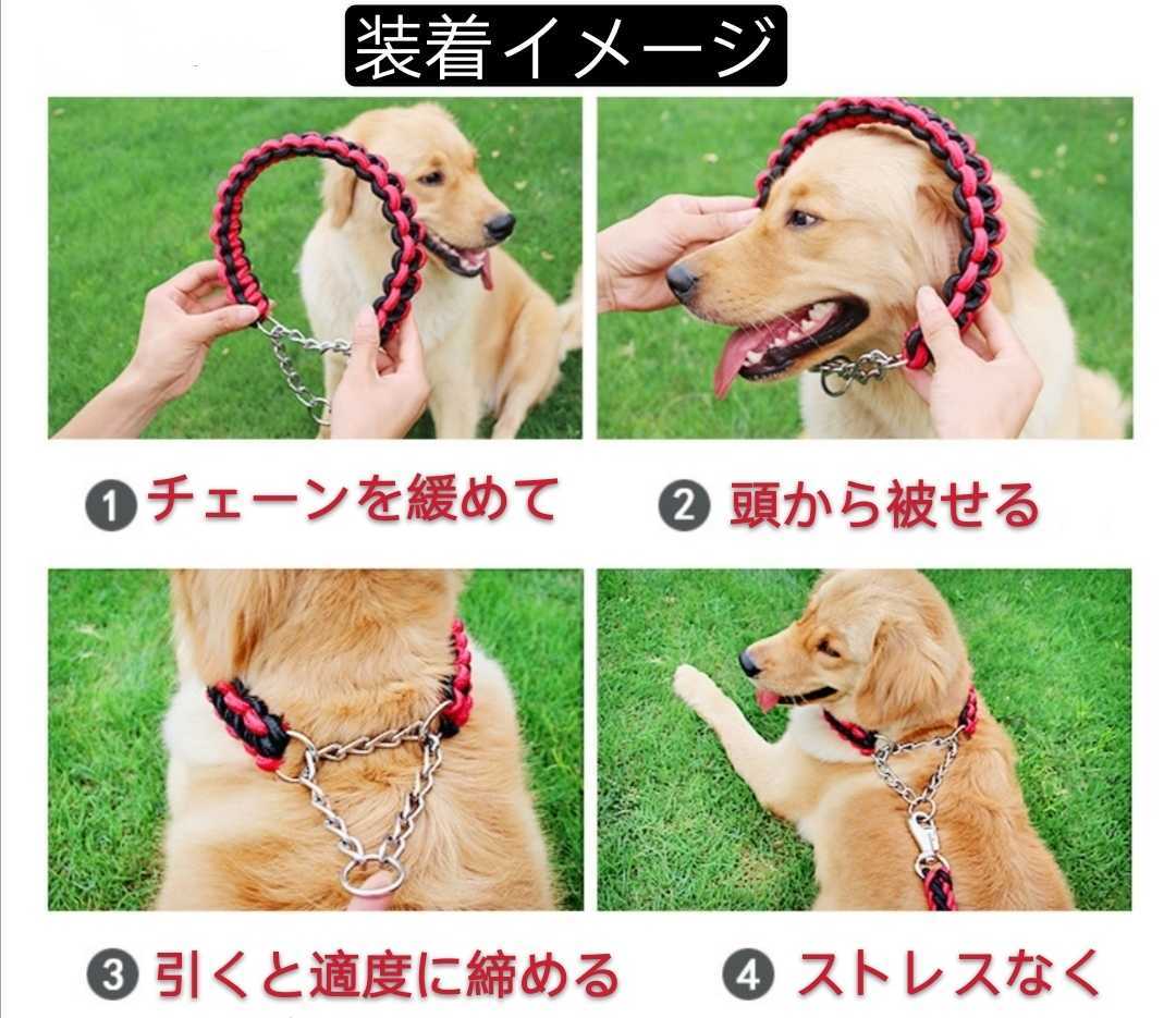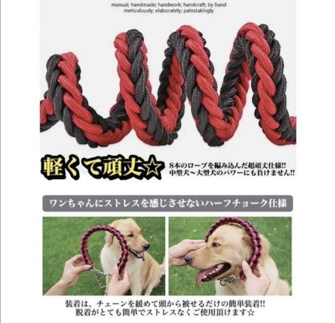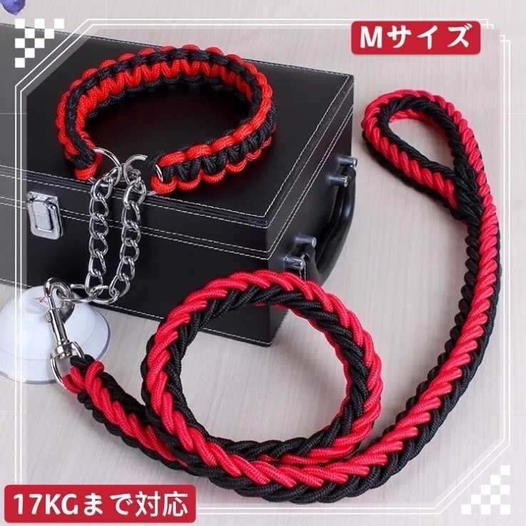 Mサイズ リード 首輪 丈夫 ドッグ ハーフチョーク 編込み 大型犬 中型犬 赤黒 收藏