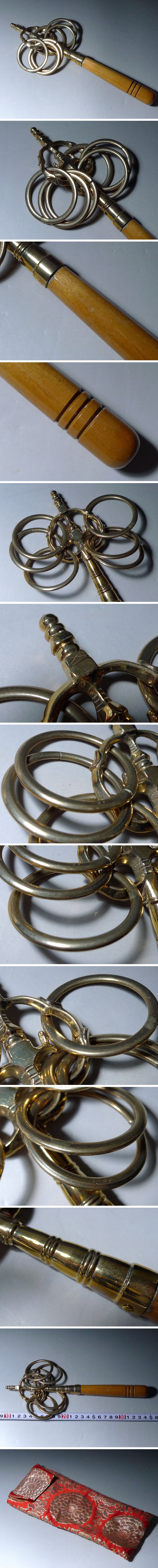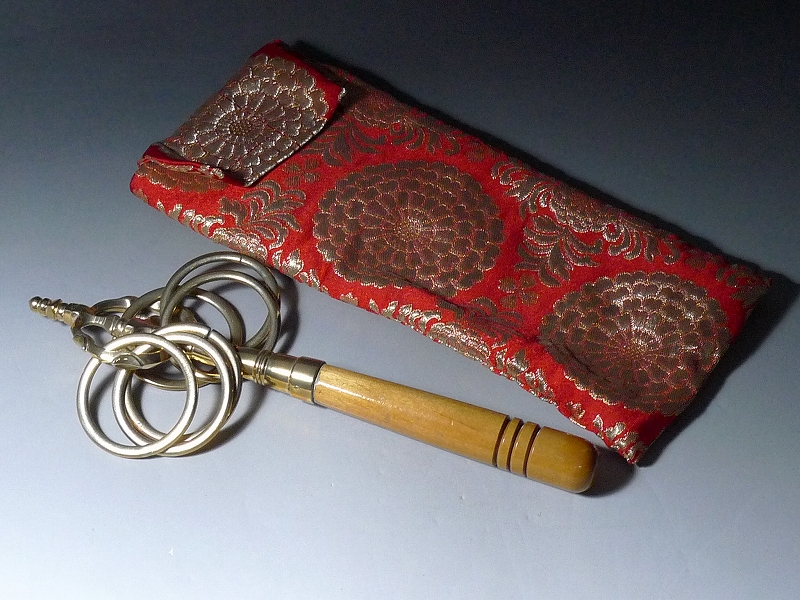60MG04▲密教法具・錫杖/しゃくじょう・全長約25cm・専用金襴袋付・真言宗・仏具・法具・寺院・仏教・仏教美術@ 收藏
