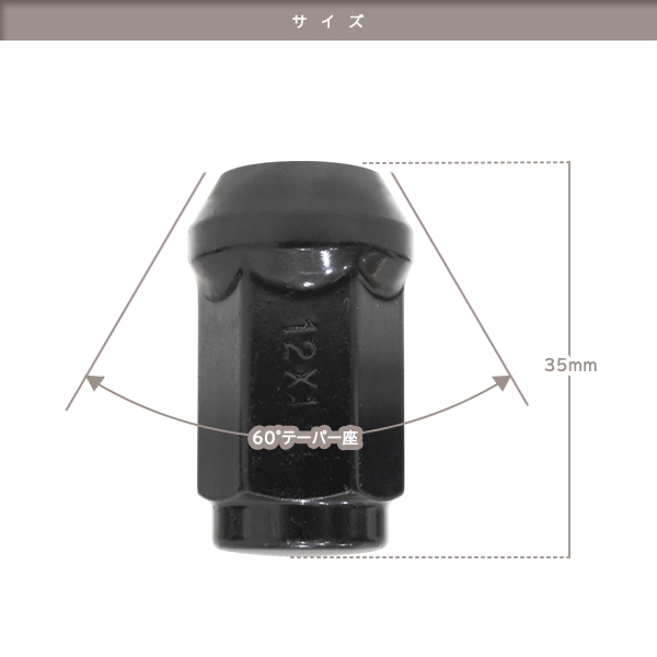ю ホイールナット [M12×P1.25 17HEX 60度テーパー 全長35mm ブラック ][ 20個 ] スチール製 袋ナット 日産/スズキ/スバル 收藏