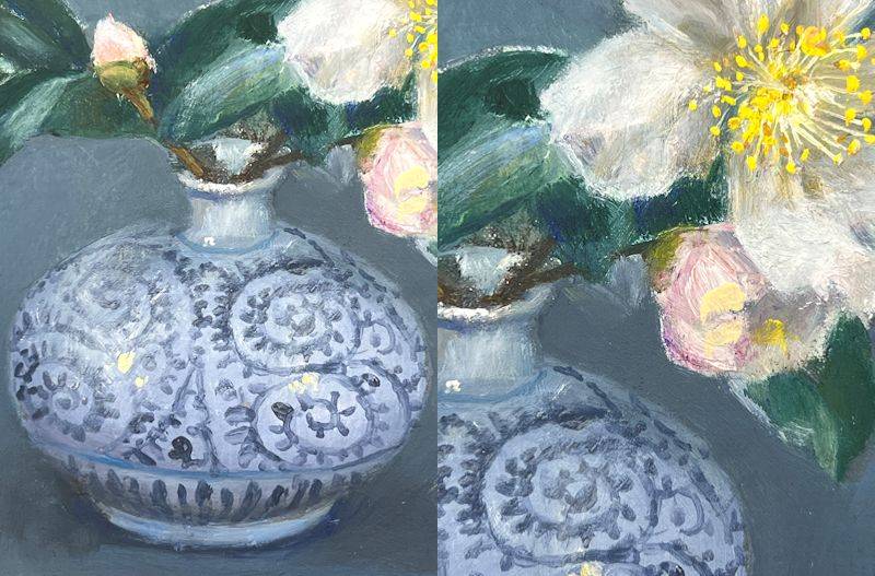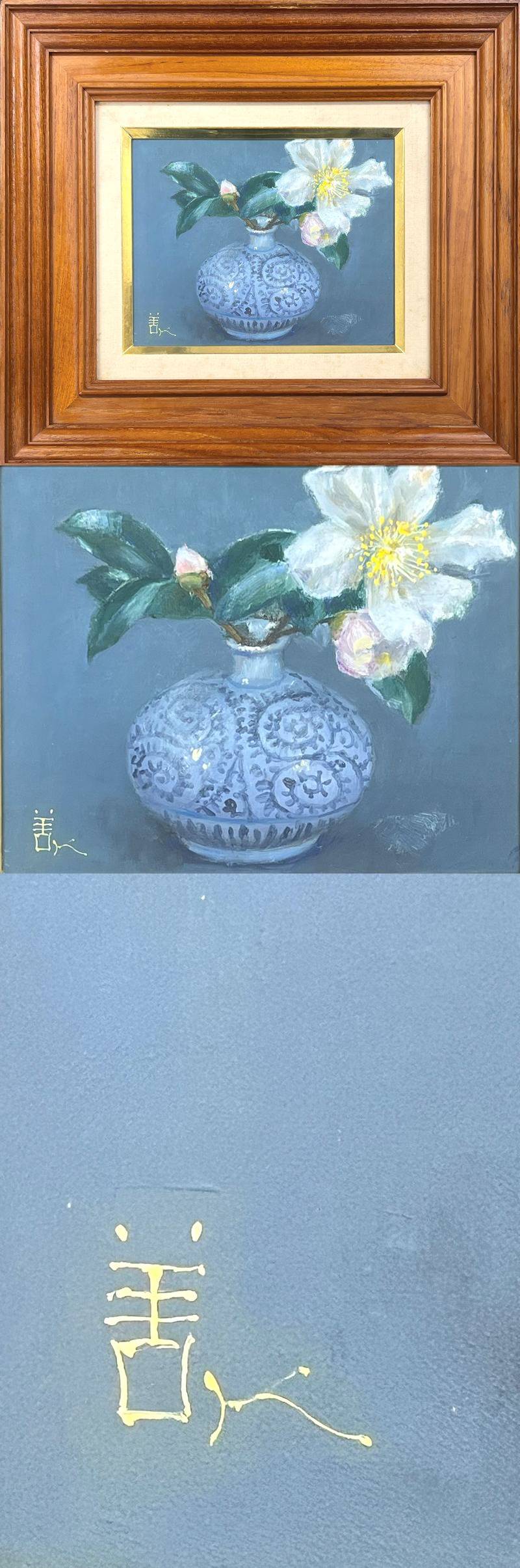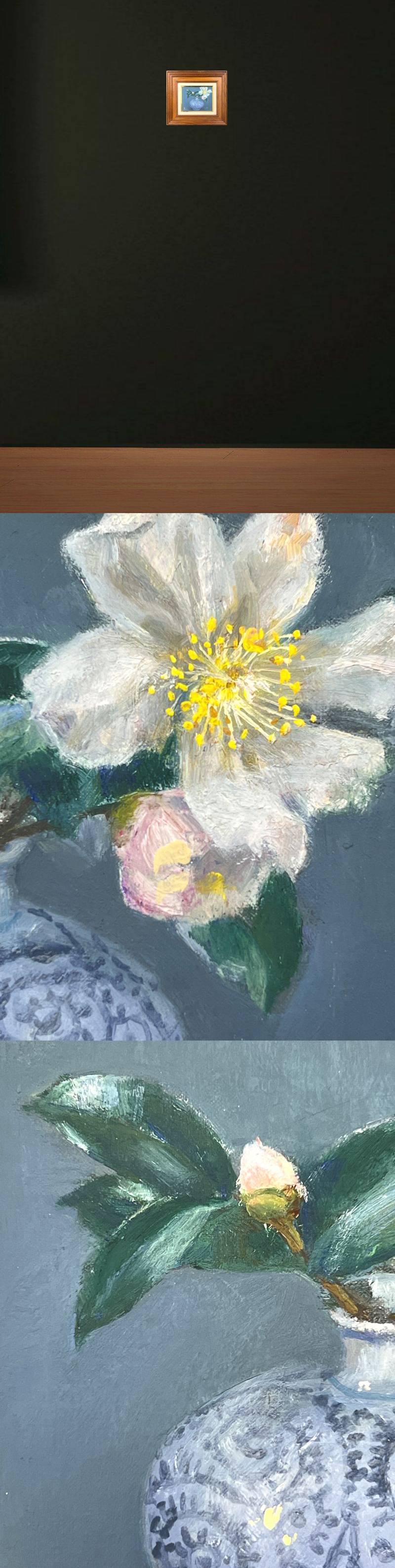 【FCP】 真作保証 小館善四郎 油彩画0号 「山茶花」 国画会永年会員 文化庁地域文化功労者表彰受賞 h 收藏