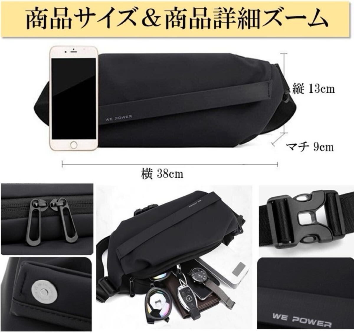 薄型 ボディーバッグ ネイビー 6ポケット 大容量 ショルダーバッグ 斜め掛け アウトドア キャンプ 釣り 登山 育児 男女兼用 收藏