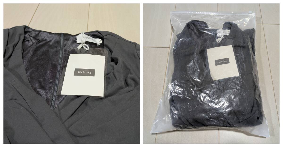 新品 未使用 Lian Yi Fangリャンイーファン 7分袖 膝丈 スリットワンピース Sサイズ グレー キャバドレス 收藏