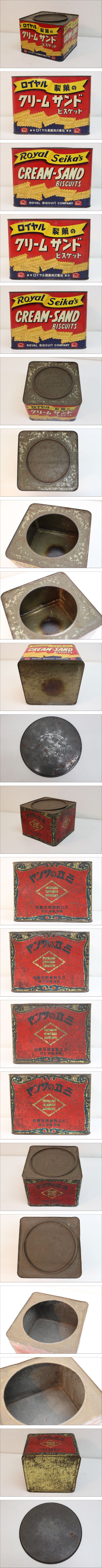 ZR703 ロイヤル製菓 クリームサンドビスケット 三立のサング ブリキ缶/菓子缶 2点セット 昭和レトロ/戦前 収納/容器 インテリア小物 現状品 收藏