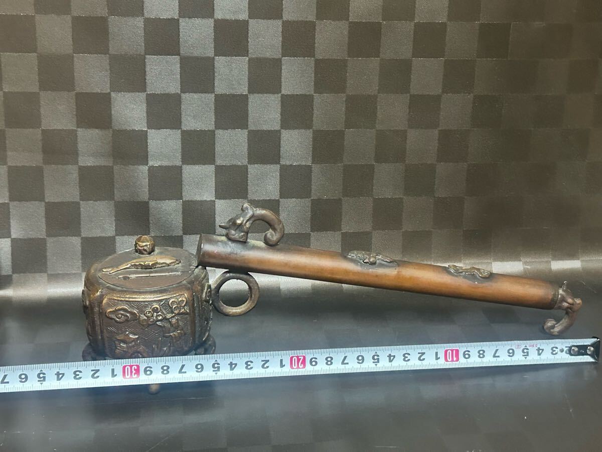 銅製 33cm 時代物 矢立 香炉  骨董品 古美術 銅器 装飾 鯉 矢立香炉 收藏