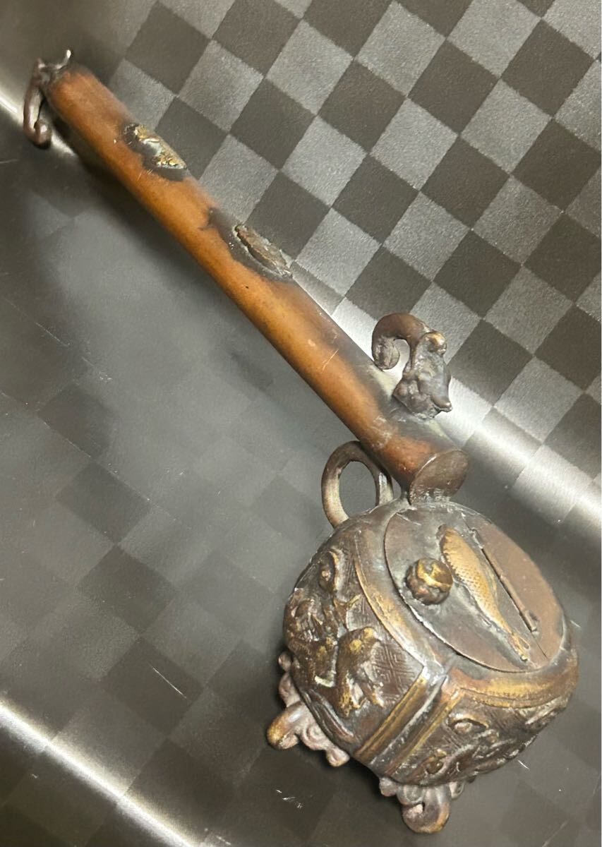 銅製 33cm 時代物 矢立 香炉  骨董品 古美術 銅器 装飾 鯉 矢立香炉