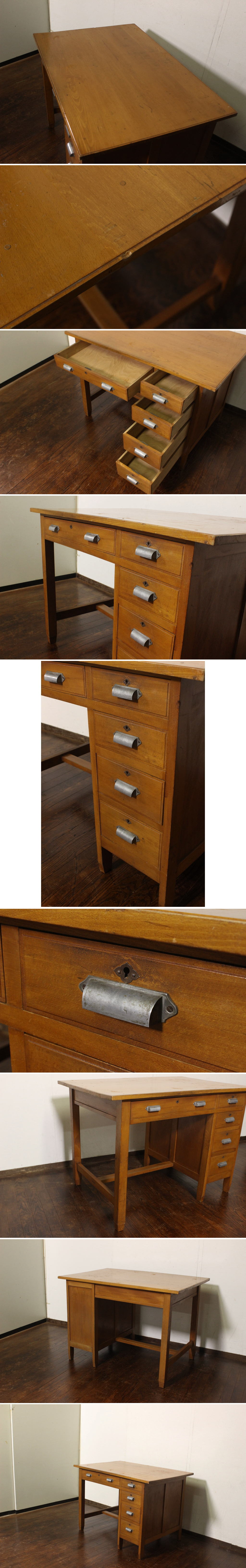 商品紹介 | 古いレトロな木製机です。 味のある使い込まれた風合いがとっても素敵です。 天板はブナ材、引き出しの取っ手も木製です。 シンプルなレトロな風合いのデザインがカッコイイです。 自宅、お店の作業台などにも活躍するのではないでしょうか。 |