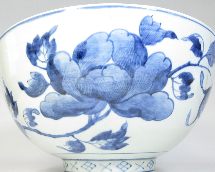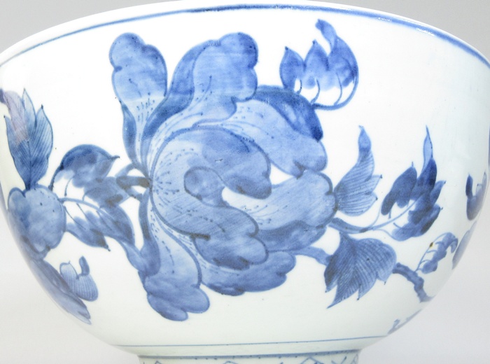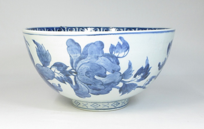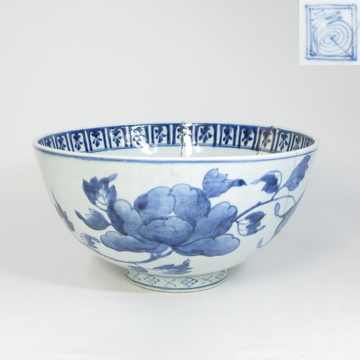 【A2243】圧巻のサイズ! 古伊万里 染付 牡丹鳳凰図 大鉢 径35.8cm 高さ18.8cm 4.4kg 渦福 江戸中期 参考品 收藏