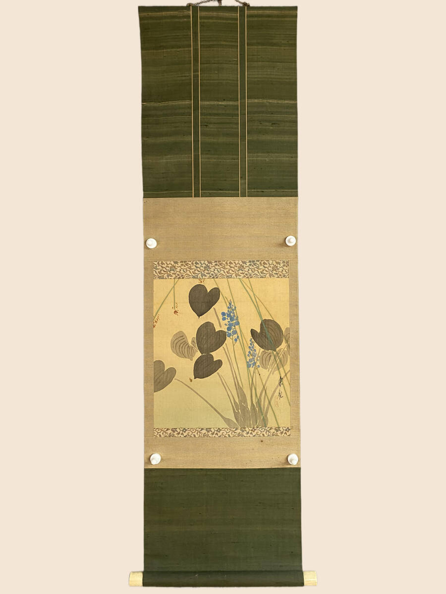 掛軸の軸先ですが、配送中の振動・気温・経年劣化等で外れてしまうことがあります。軸先の外れは、返品の対象にはなりません。大変お手数ですが、お客様ご自身での修復をお願い致します。