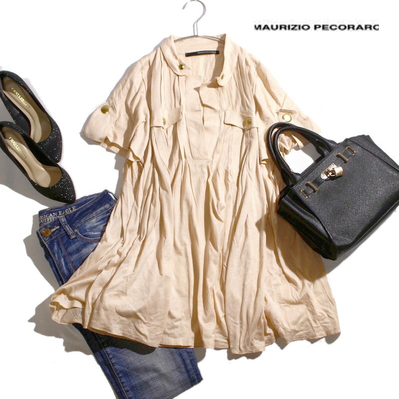 美品 イタリア製 マウリツィオペコラーロ MAURIZIO PECORARO 夏 オーガンジー ピンタック ロング カットソー デザイナーズ ブランド M L 收藏