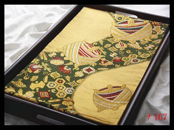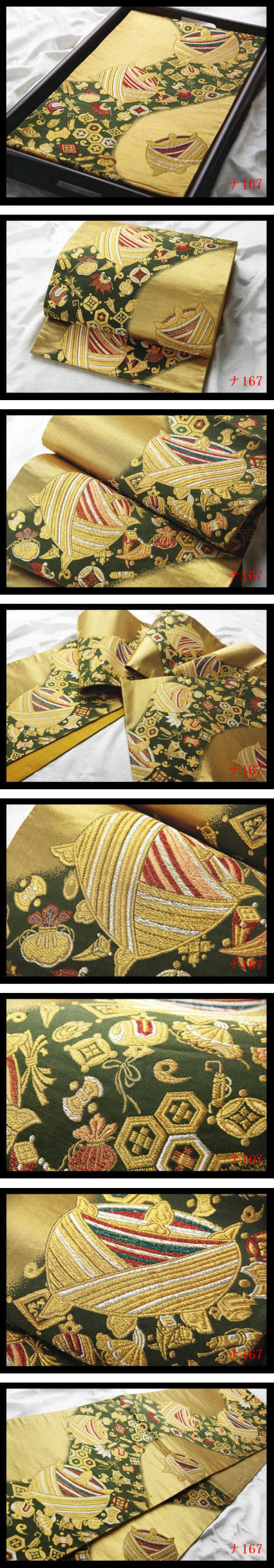 【ナ167】厳選逸品 振袖可 糸巻宝尽くし紋 金色地 気品豊かに 正絹純金糸六通高級美術袋帯 検★着物名古屋帯和装小物帯締め 收藏