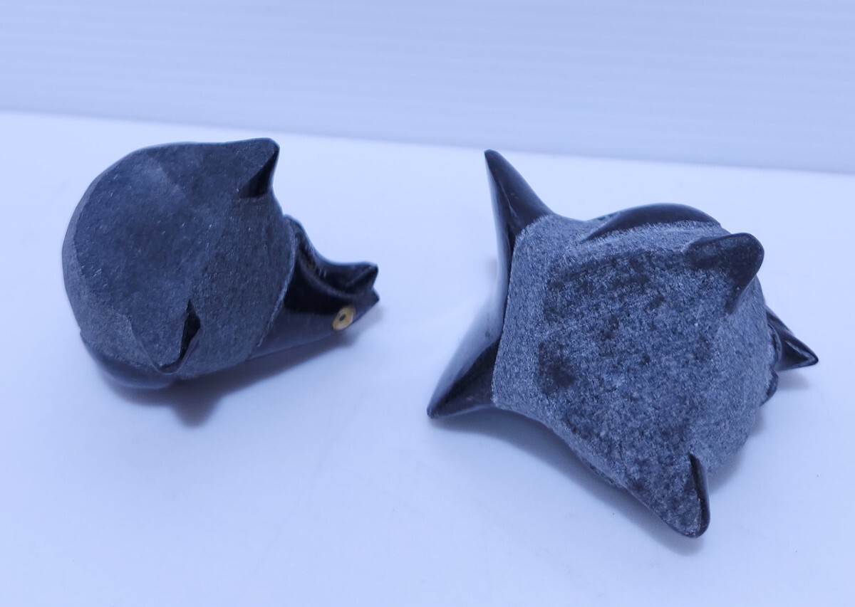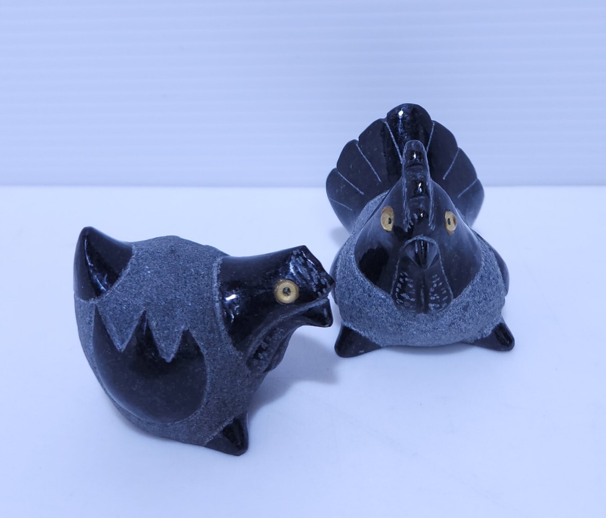 黒御影石 鶏 ニワトリ 縁起物 置物 庭石 オブジェ インテリア 干支 希少品 2台 (AB-28) 收藏