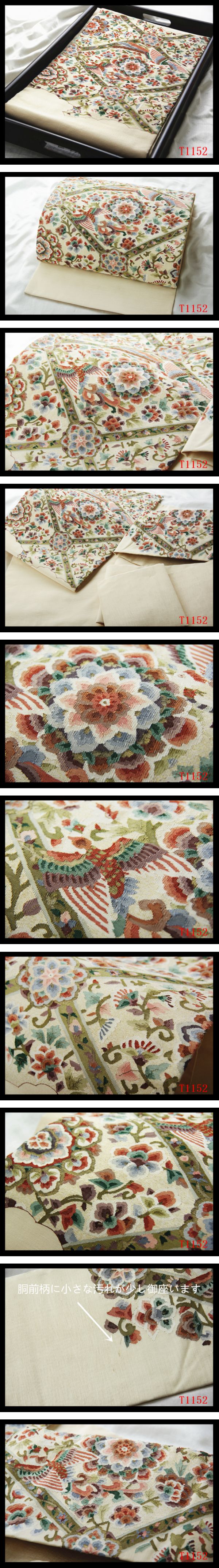 蔵【T1152】厳選逸品 明綴れ 菱取唐草花鳥紋 鳥の子色地 気品豊かに 正絹純金糸高級美術名古屋帯 ◇検簪着物袋帯和装小物帯締め 收藏