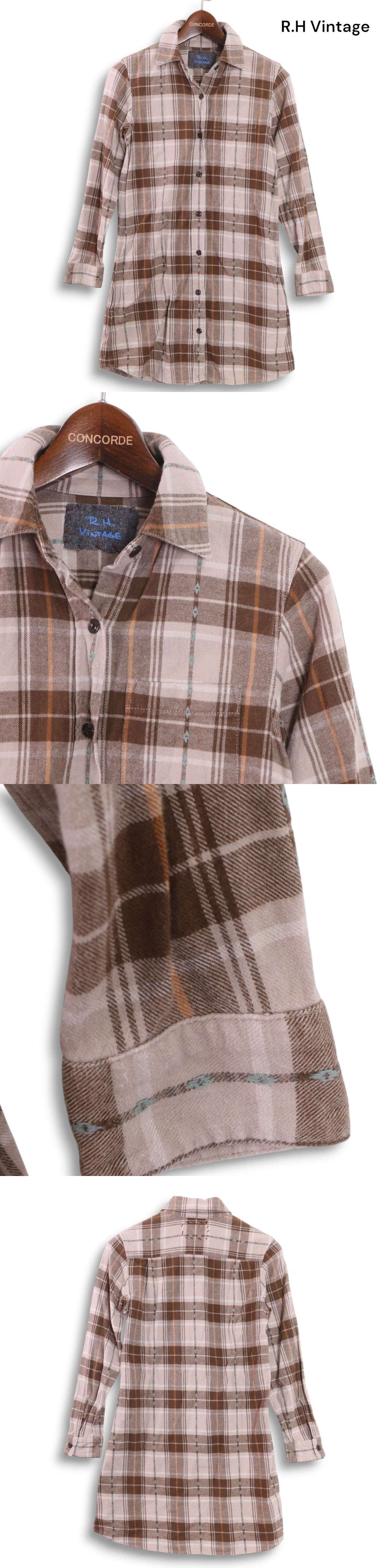 R.H Vintage ロンハーマン ヴィンテージ 秋冬★ 長袖 ロング ネル チェック シャツ チュニック Sz.XS レディース 收藏